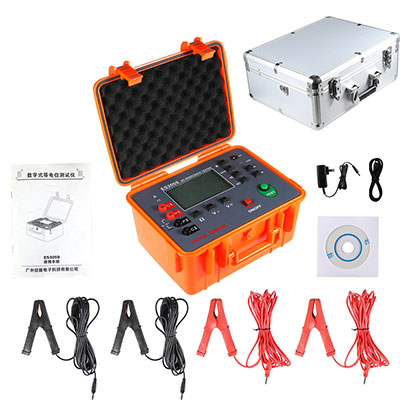 ES3050數(shù)字式等電位測試儀由主機、監(jiān)控軟件、測試線、通訊線等組成。主機大屏LCD顯示,一目了然。能存儲500組數(shù)據(jù),電阻測量范圍:0.0001Ω~30KΩ,直流電壓范圍:0.0~1000V,交流電壓范圍:0.0~750V。監(jiān)控軟件具有在線實時監(jiān)控與歷史查詢功能,動態(tài)顯示,具有報警值設定及報警指示功能,具有歷史數(shù)據(jù)讀取、查閱、保存、報表、打印等功能。