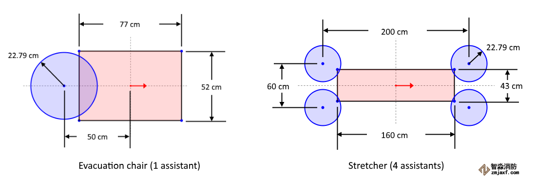 圖4.疏散椅和擔(dān)架助手的尺寸和位置