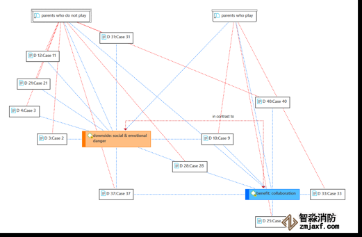 例如,將代碼鄰近添加到文檔節(jié)點(diǎn)或文檔組節(jié)點(diǎn)允許創(chuàng)建基于案例的網(wǎng)絡(luò)。您可以提出以下問題:哪些代碼已應(yīng)用于哪個(gè)文檔(或文檔組)。ATLAS.ti在代碼和它們出現(xiàn)的文檔(文檔組)之間畫了一條藍(lán)線。