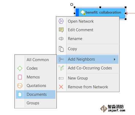 圖12:向ATLAS.ti網(wǎng)絡(luò)中的代碼節(jié)點(diǎn)添加文檔(Windows和Mac版本9.1)