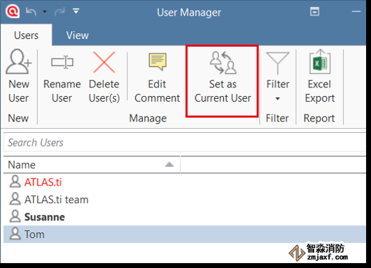 圖18:在用戶管理器中設(shè)置當(dāng)前用戶(ATLAS.ti 9.1版Windows)