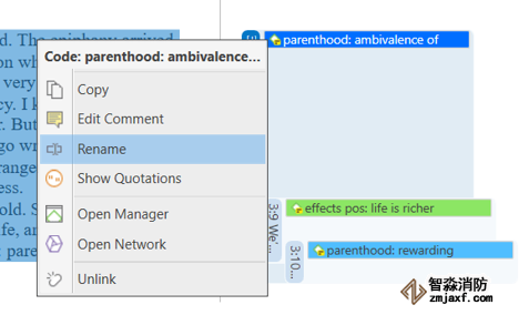 圖5:重命名邊距區(qū)域中的代碼(ATLAS.ti 9.1版Windows)