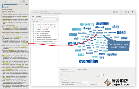 圖6:從詞云或詞表訪問上下文中的詞(ATLAS.ti 9.1 Mac版)