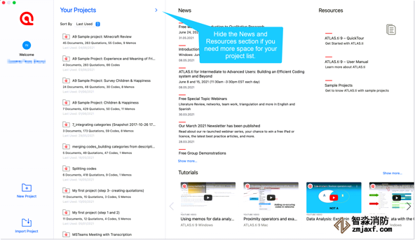 圖1:ATLAS.ti 9.1版Mac中的新歡迎屏幕