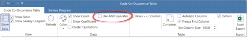 您現(xiàn)在可以在代碼共現(xiàn)表中的共現(xiàn)和AND運(yùn)算符直接切換。這允許您僅搜索編碼完全相同引用的代碼:
