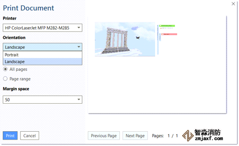 方向:默認(rèn)選擇是“橫向”,因?yàn)檫@可能是查看文檔和邊距區(qū)域中全部代碼的理想選擇