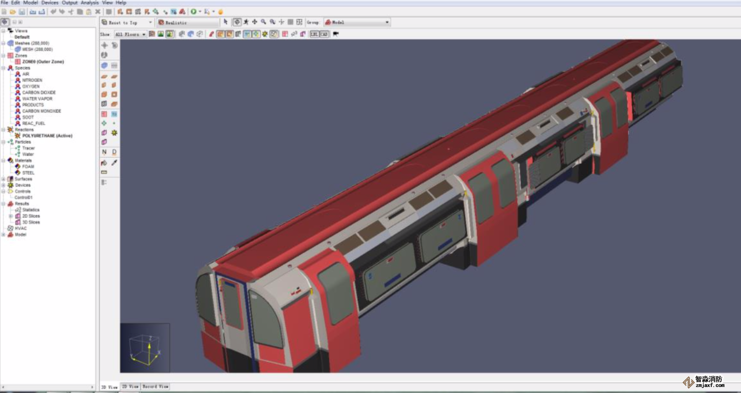 列車火災(zāi)與疏散模擬,使用軟件Pathfinder+PyroSim