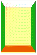 下面是一個(gè)示例,可以練習(xí)上述大部分選項(xiàng)。右側(cè)有一個(gè)供氣口,溫度為50.0 C。在底部,加熱器500 C通過對(duì)流和輻射提供熱量。在左側(cè),部分空氣被排出,表面溫度值為20 C。頂部是OPEN,正面和背面是INERT。 速度矢量如圖 3所示。