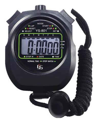 秒表主要有機(jī)械秒表和電子表等2類,電子秒表主要為三按鍵和四按鍵2大類?,F(xiàn)在,使用最為廣泛的是電子秒表,機(jī)械秒表使用已很少見。目前,國(guó)產(chǎn)電子秒表一般是利用石英振蕩器的振蕩頻率作為時(shí)間基準(zhǔn),采用6位液晶數(shù)字顯示時(shí)間,具有顯示直觀、讀取方便、功能多等優(yōu)點(diǎn),如圖1-1所示。