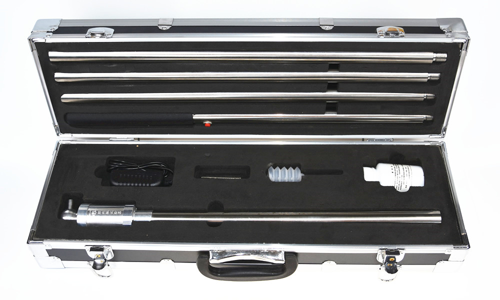 3、連接:根據(jù)高度適當選取連接桿數(shù)量,然后將槍頭、連接桿、電池桿按順時針的方向轉連接。拆卸按相反的方向操作。